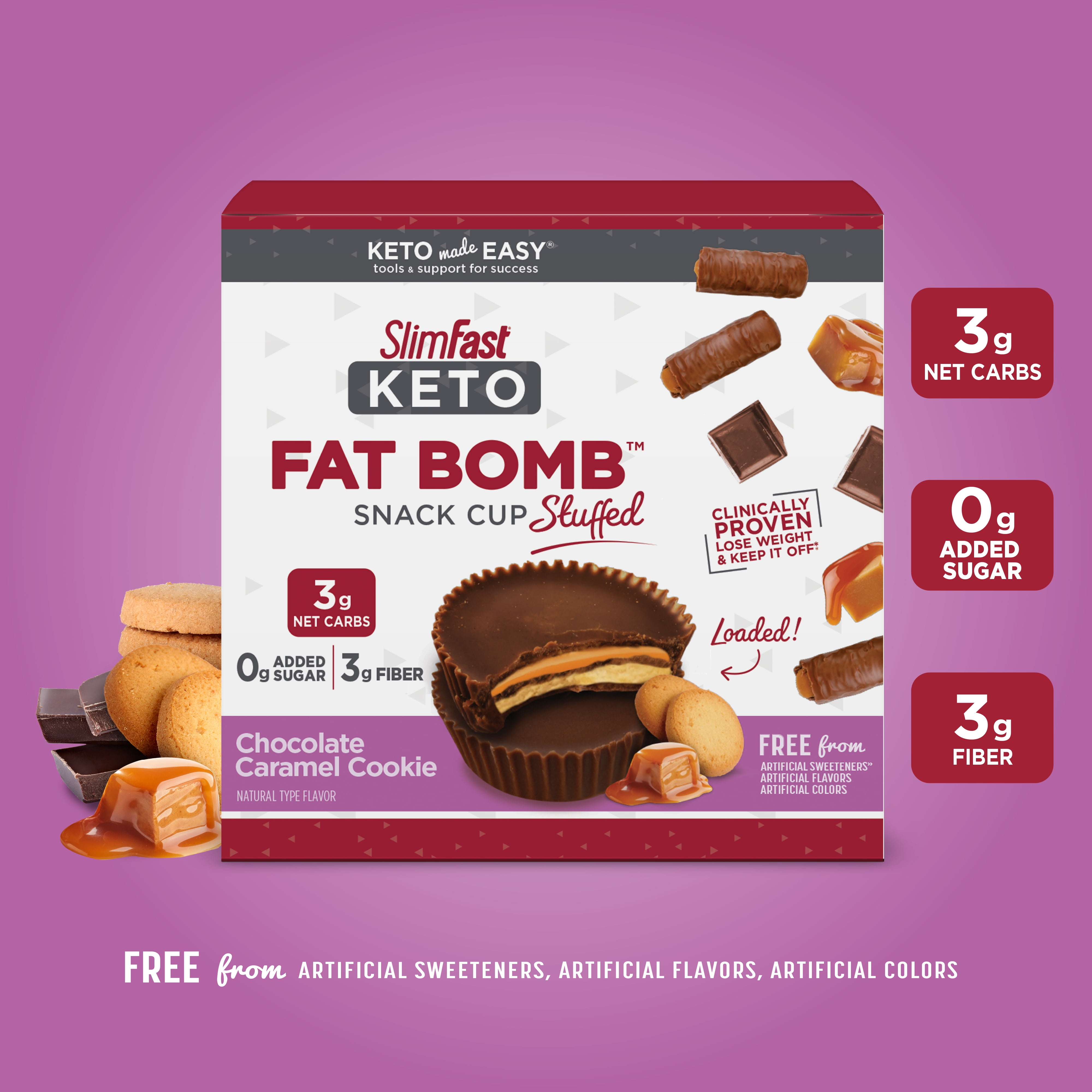 Slimfast Keto Fat Bomb Stuffed Snack Cups Chocolate Caramel Cookie 12 Count Walmart Com